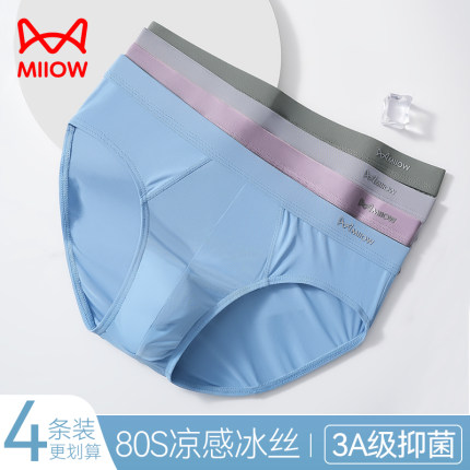 猫人冰丝男士内裤男抑菌裆三角裤夏季薄款凉感透气男生大码底裤衩