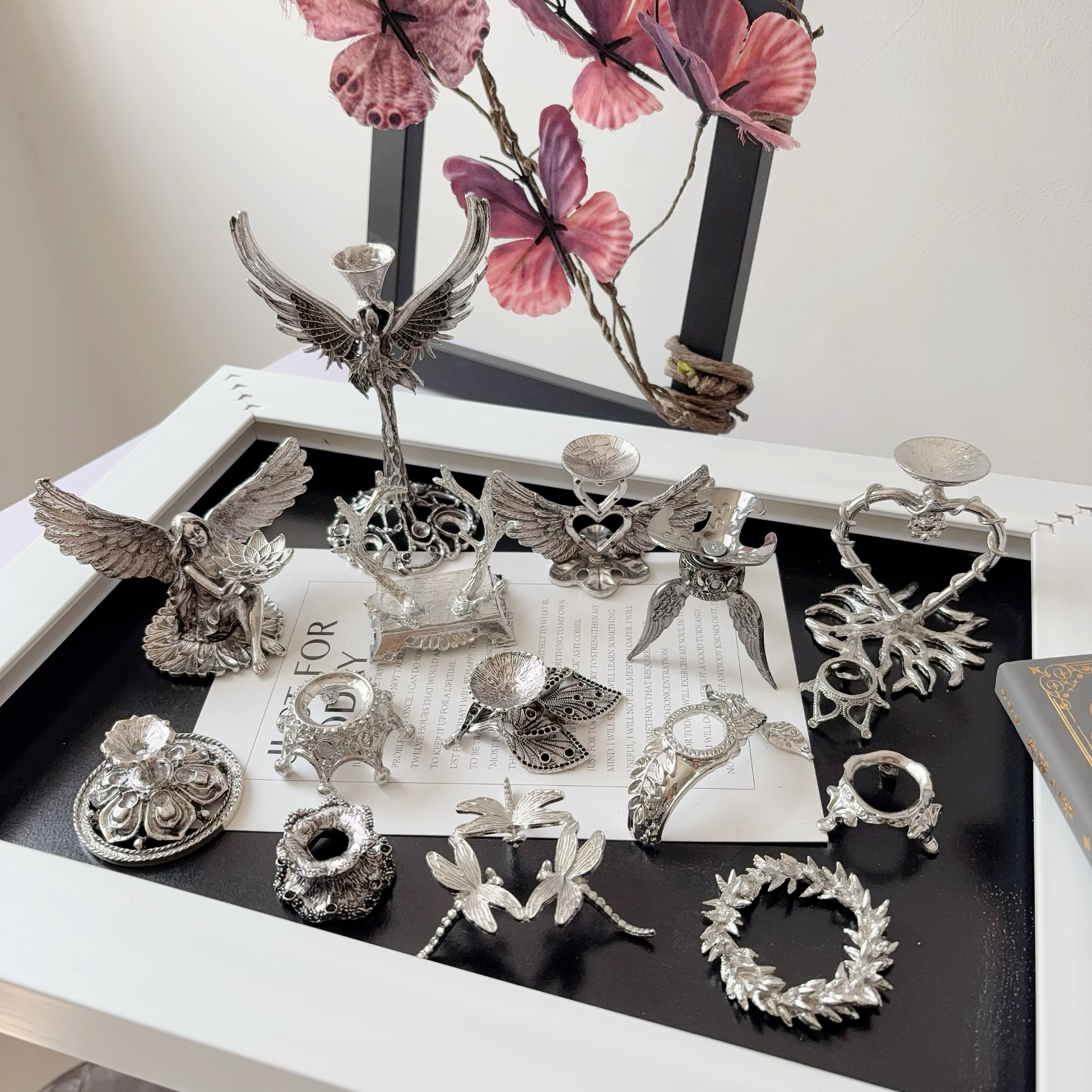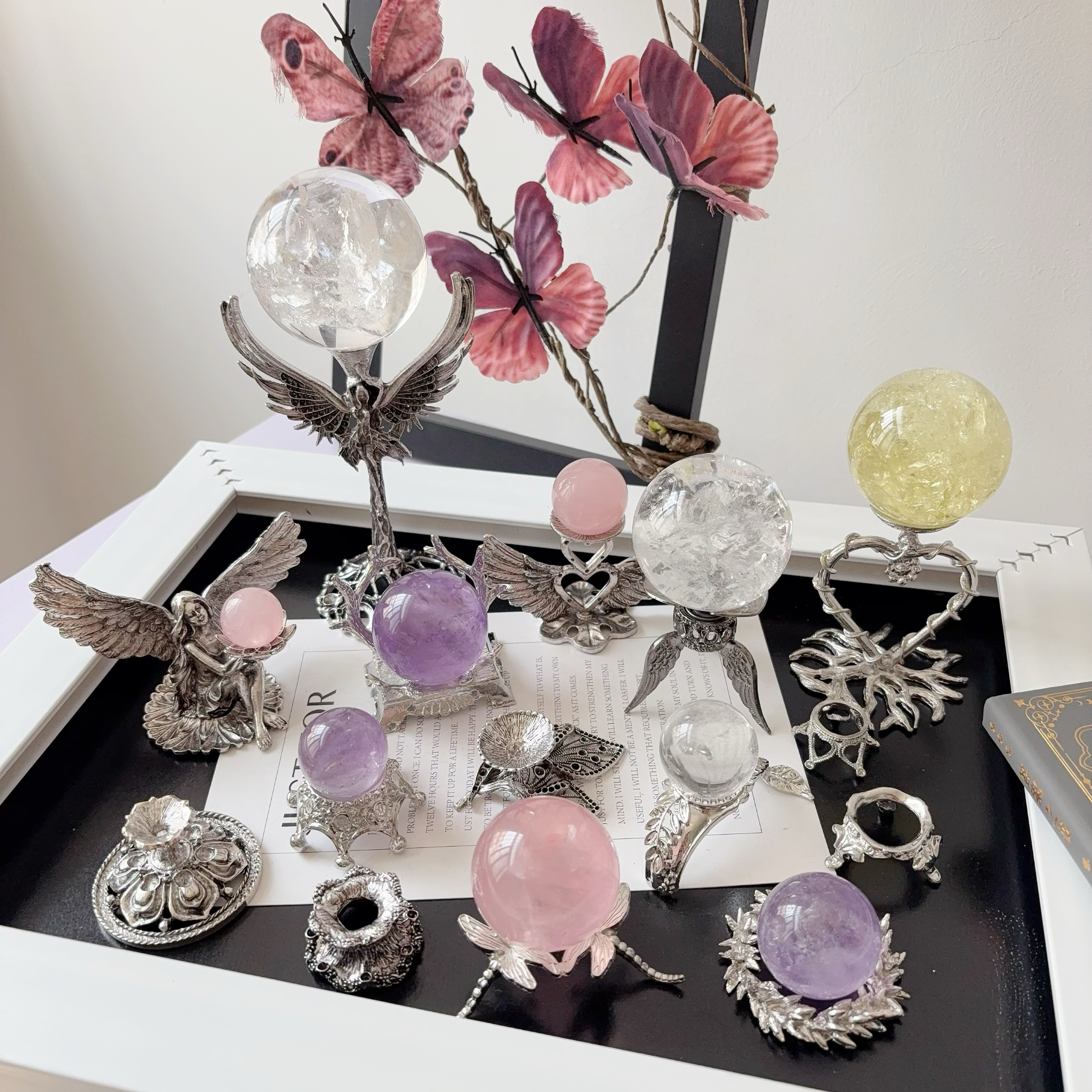 高定水晶球底座金属电镀银色球托支架摆件装饰女神爱心王冠蜻蜓花
