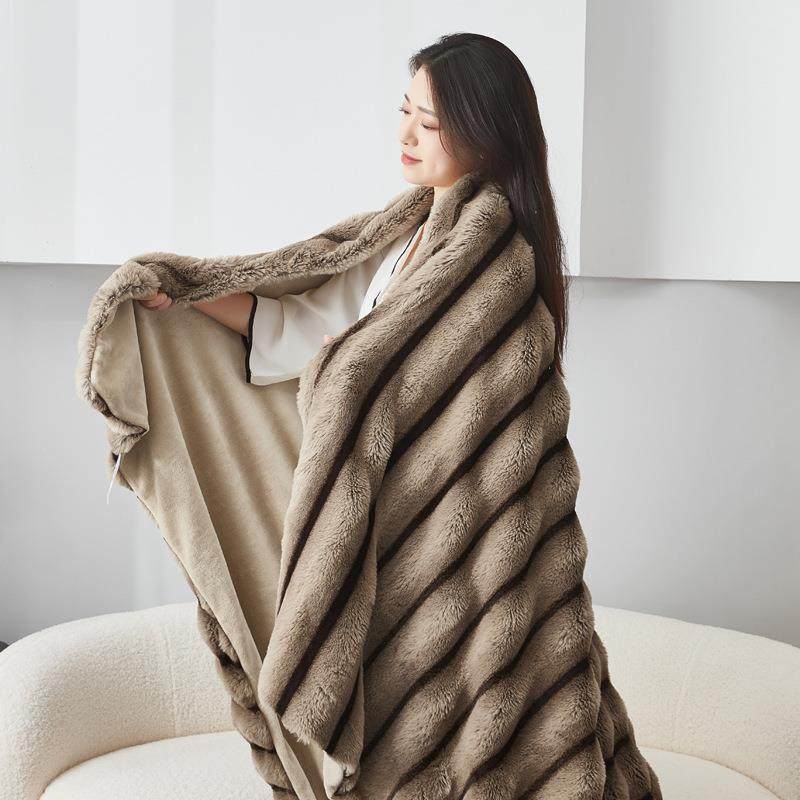 外贸兔毛绒毛毯被子加厚保暖双面绒多功能沙发盖毯办公室午休毯子