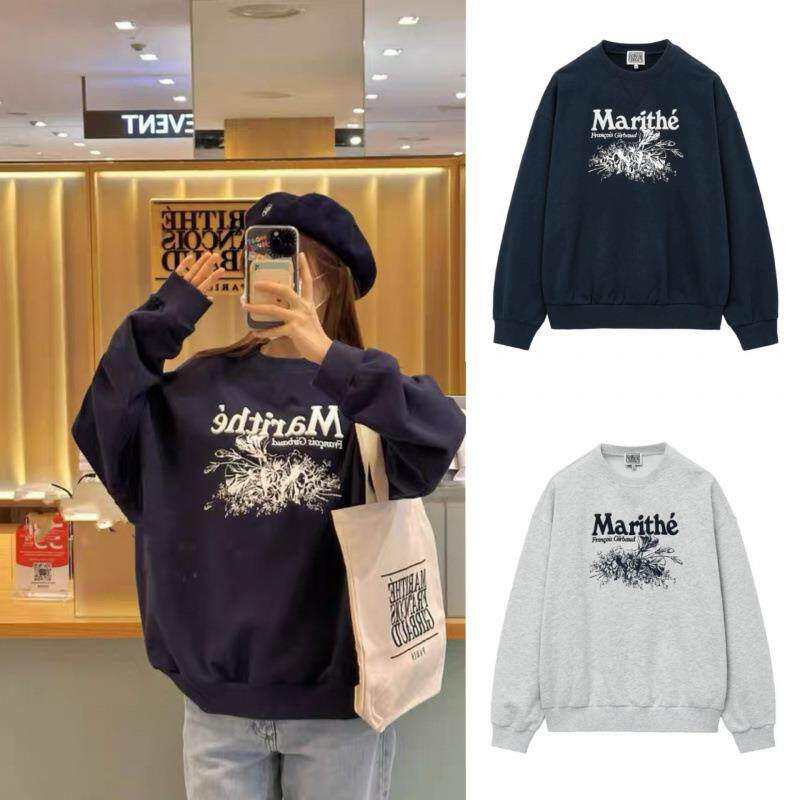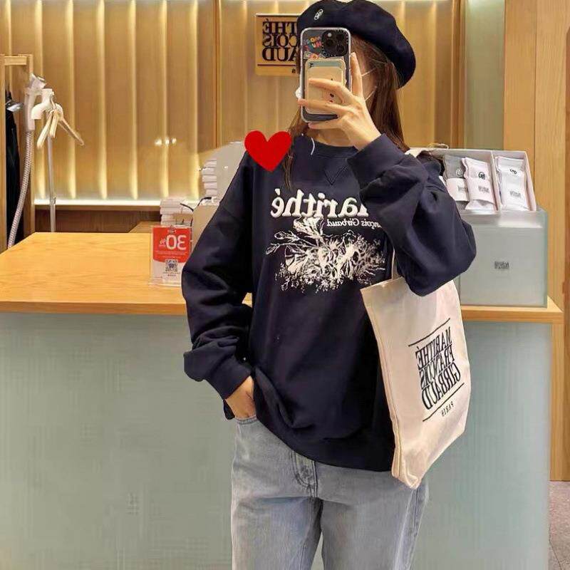 ●callmebabysoft韩国Marithe重工字母立体刺绣花朵宽松圆领卫衣