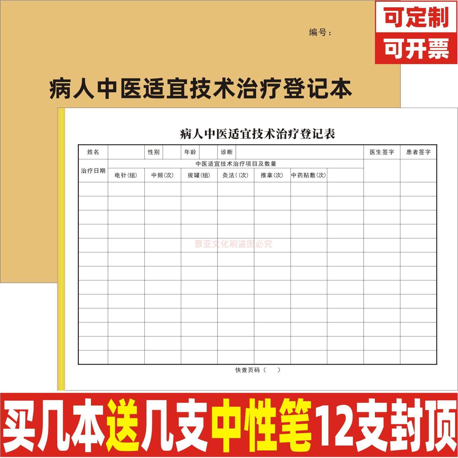 病人中医适宜技术治疗登记本治疗护理针灸理疗记录本艾灸拔罐预约