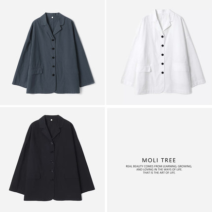 WXZ08027 茉莉雅集随性自由松弛单排扣落肩纸感棉廓形西装女早春