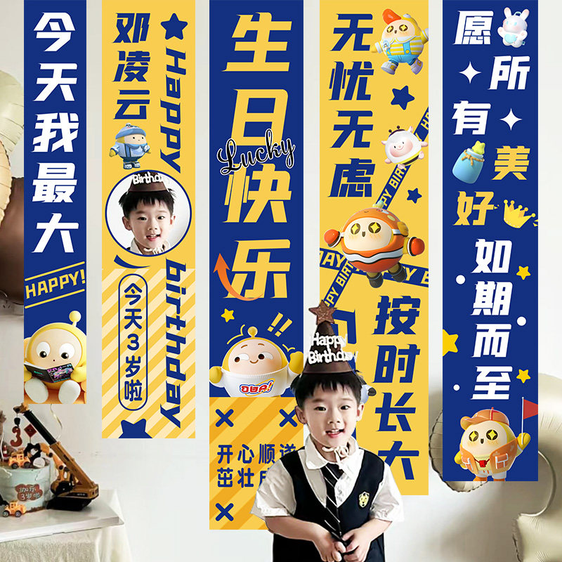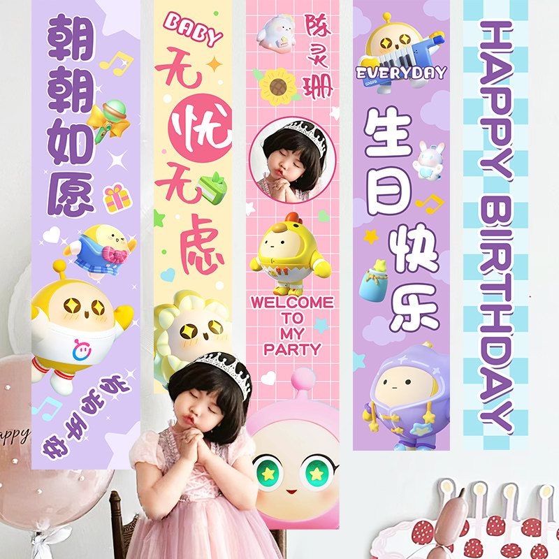 男女孩儿童蛋仔派对生日场景布置条幅仪式感10周岁氛围装饰品挂布