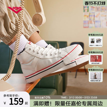 PONY帆布鞋男女同款情侣经典高帮复古撞色休闲帆布潮搭耐磨透气