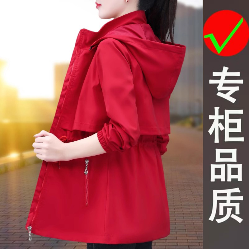 春秋新款中长款休闲风衣外套女连帽洋气大码女装春秋装宽松潮上衣