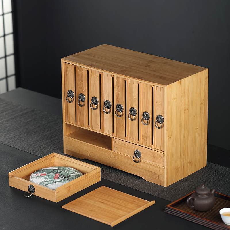 手工竹制普洱茶饼收纳盒大容量七子茶饼盒开茶盘多层茶仓茶叶罐