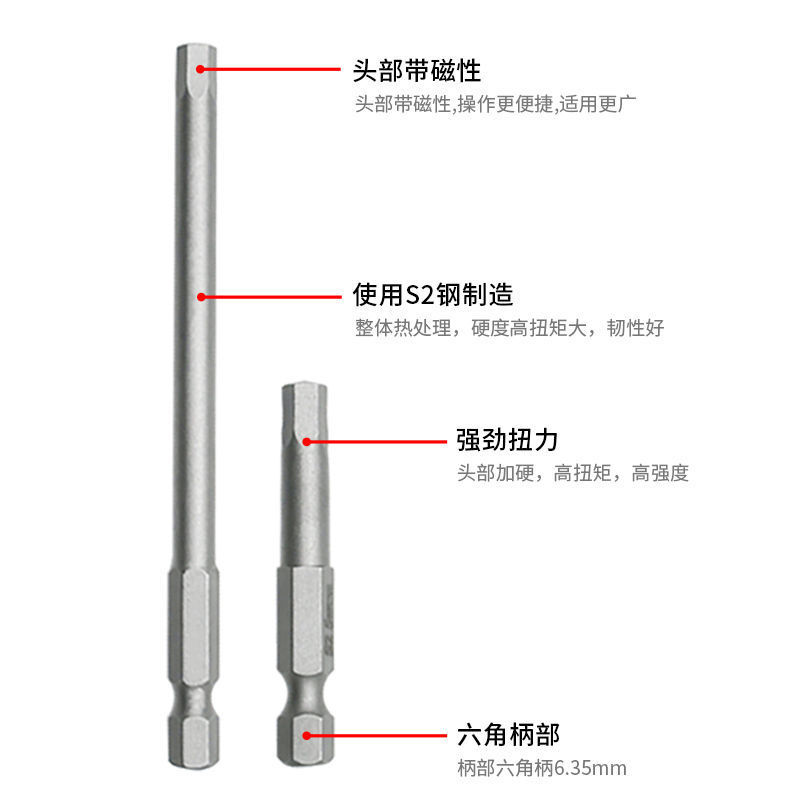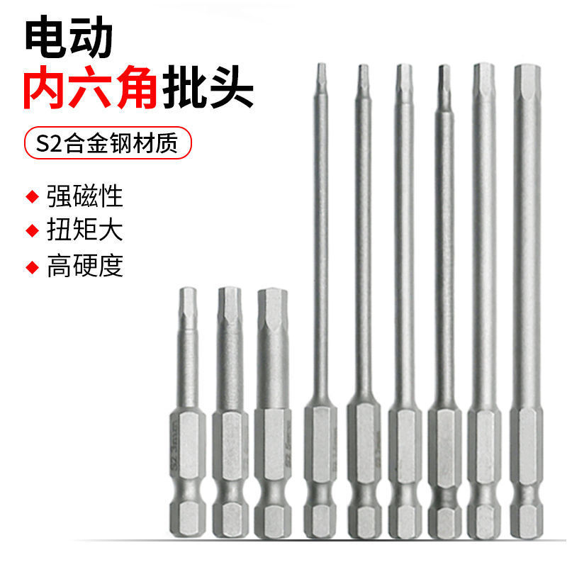 电动内六角批头 手电钻螺丝w批套装 S2超硬工业加长风批六角头