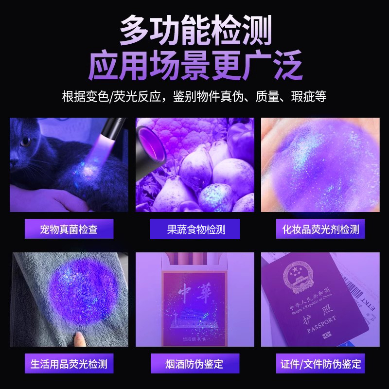 荣事达紫光灯鉴定玉石检测烟酒专用荧光剂验钞照手电筒紫外线笔