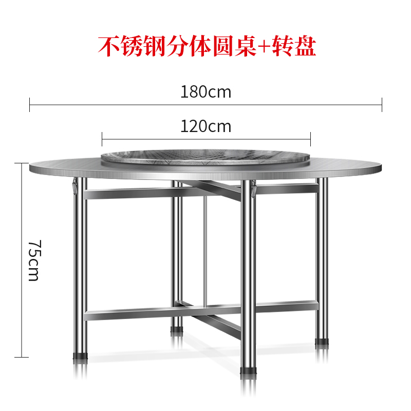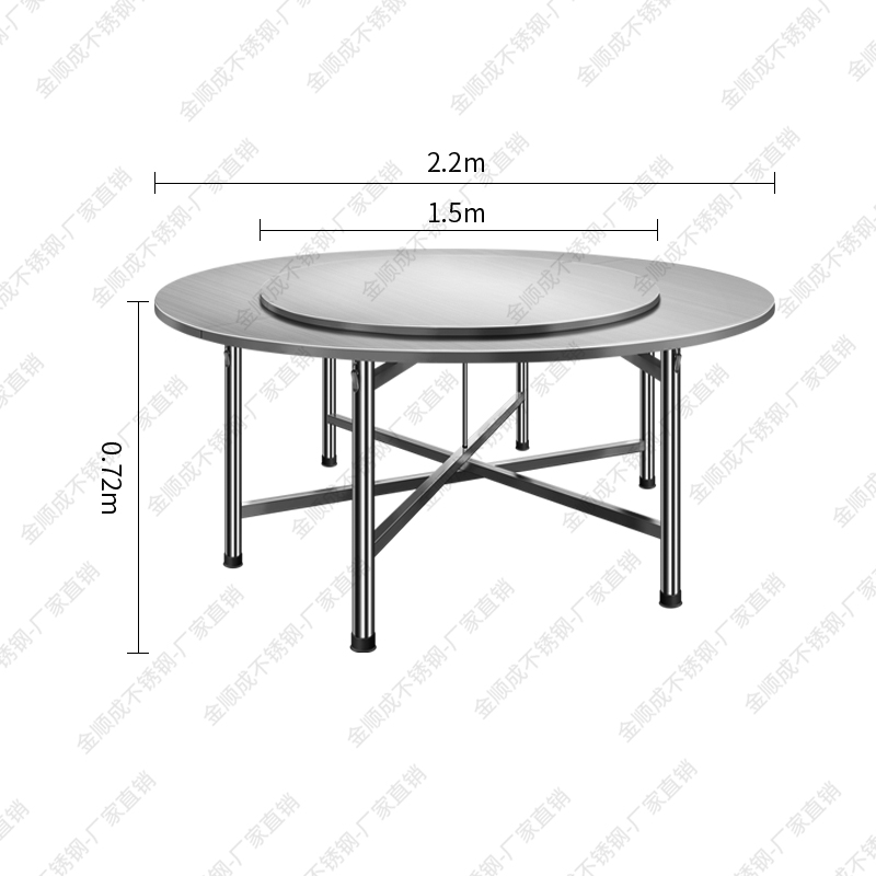 不锈钢大圆桌2.2米配1.5米转盘酒店餐厅圆形桌子圆台桌面折叠餐桌