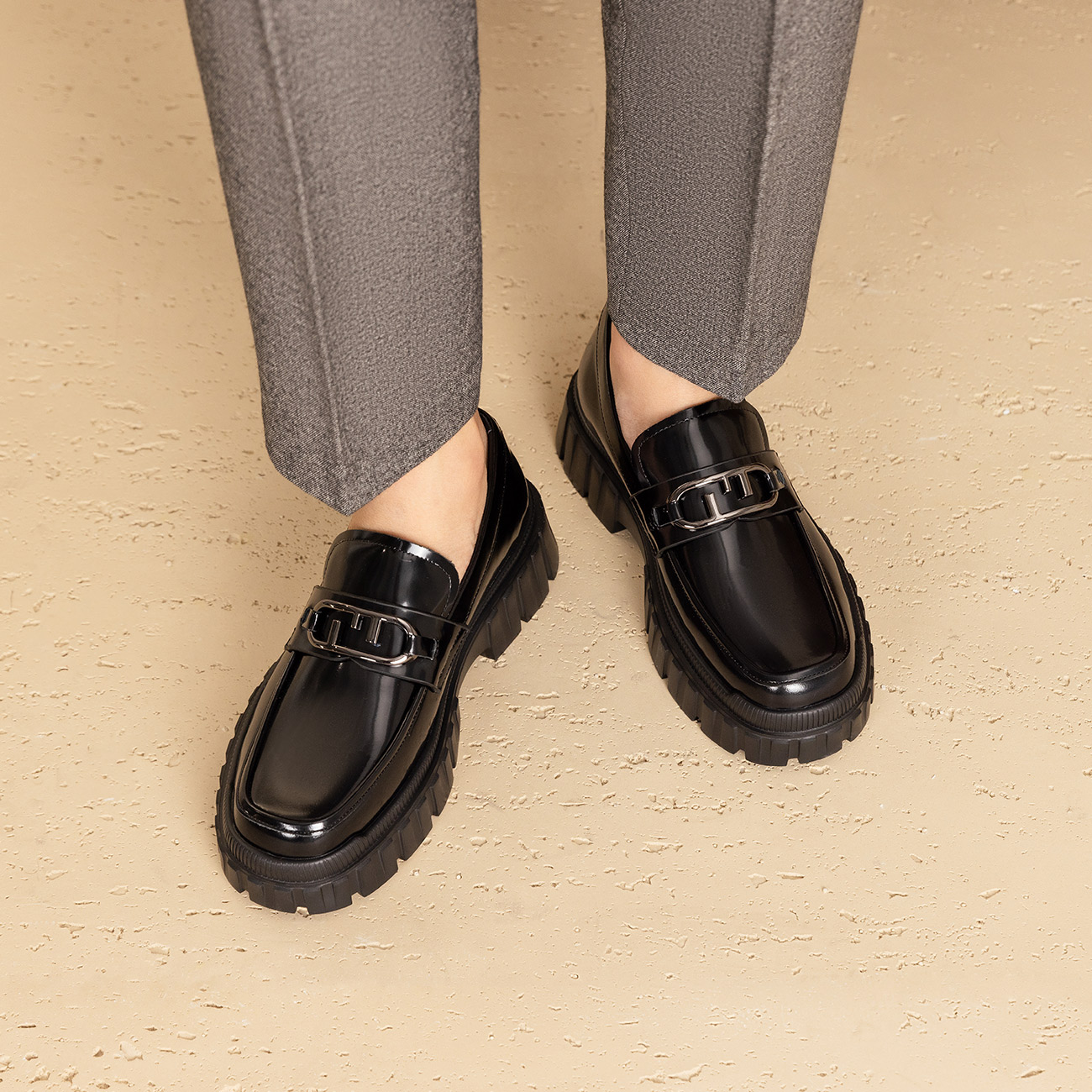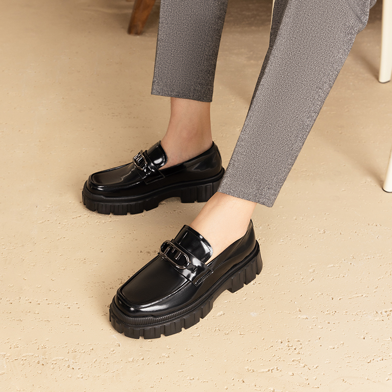 真皮舒适厚底英伦一脚蹬乐福鞋