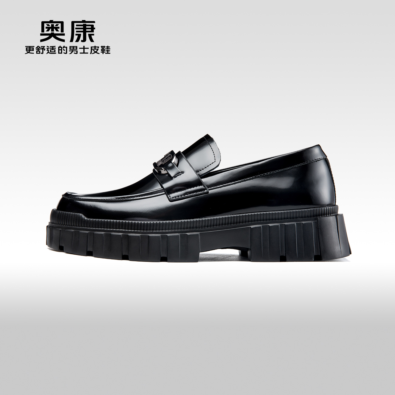 【运动皮鞋】奥康男鞋秋季新款真皮舒适厚底英伦一脚蹬乐福鞋