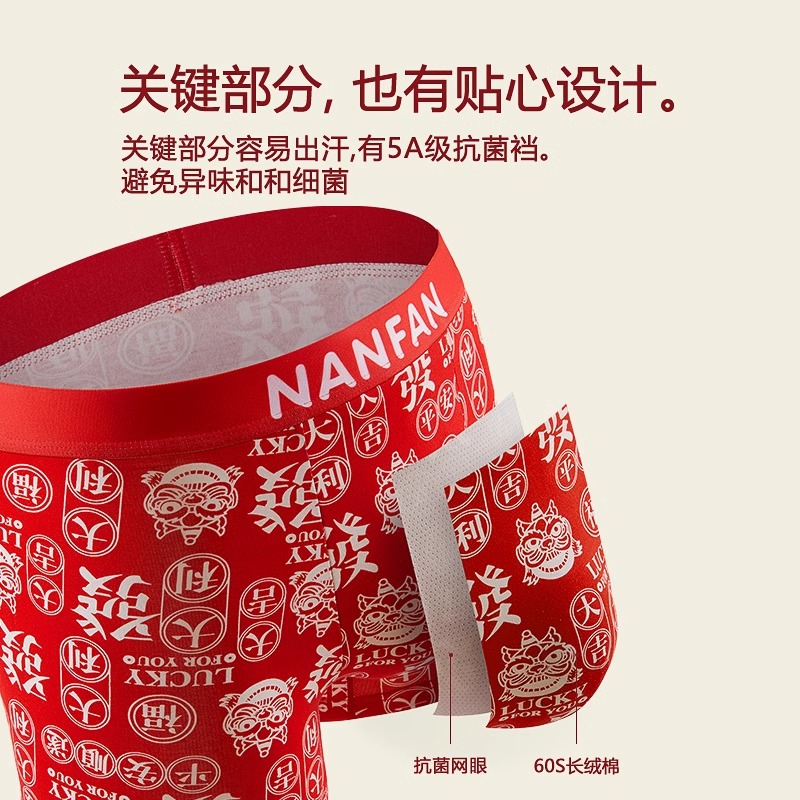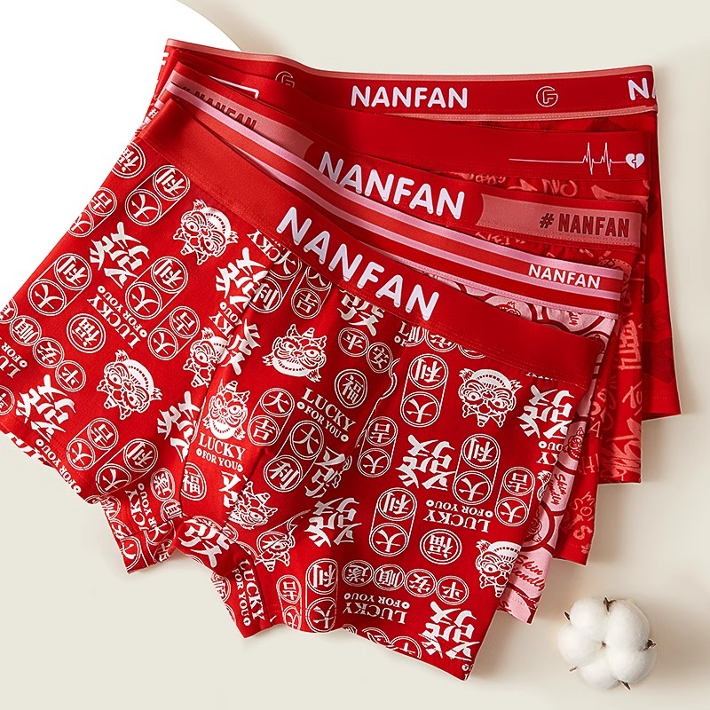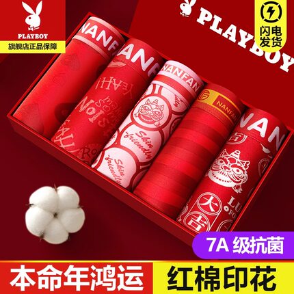 花花公子本命年男士内裤平角纯棉大红色结婚礼物蛇年男生四角短裤
