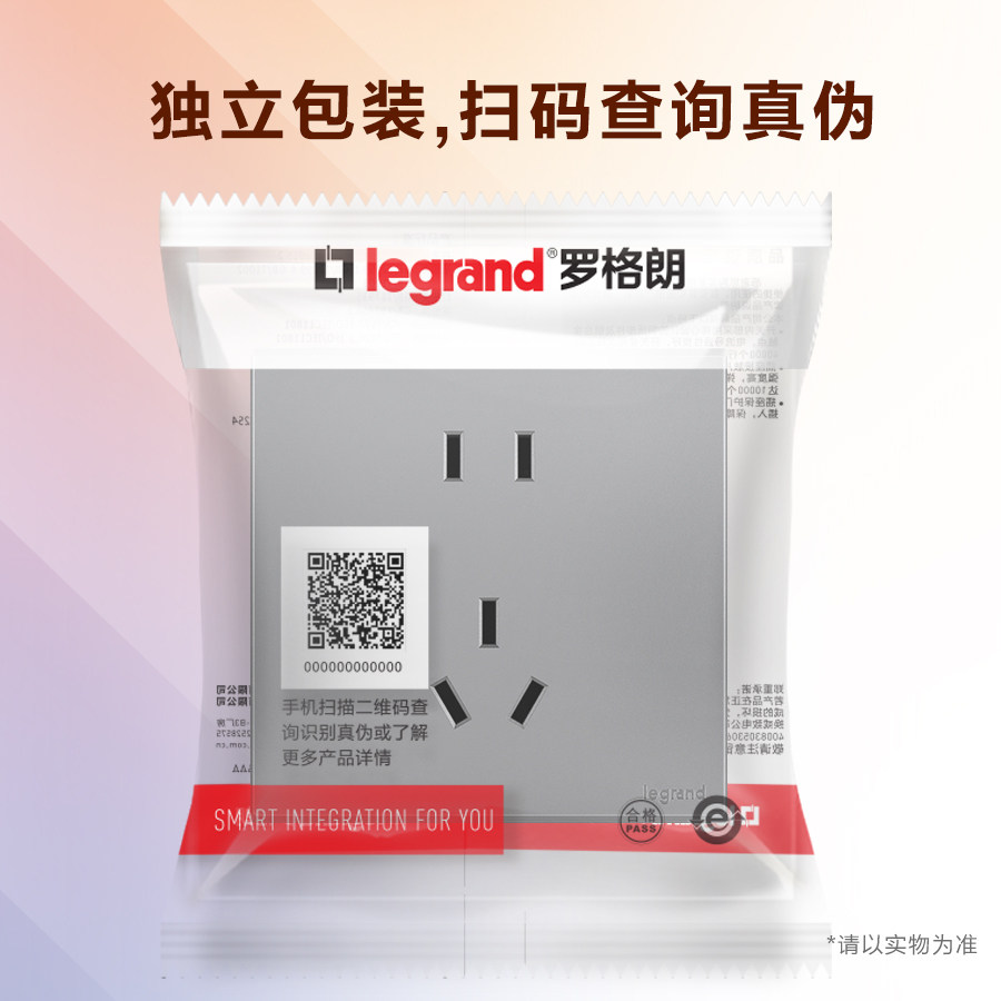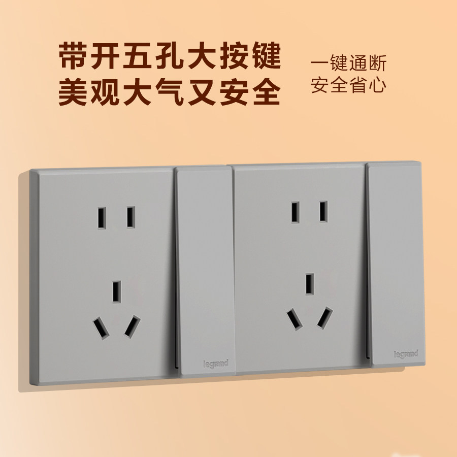 罗格朗开关插座面板二三插家用嵌入式墙壁电源五孔86型画采深砂银
