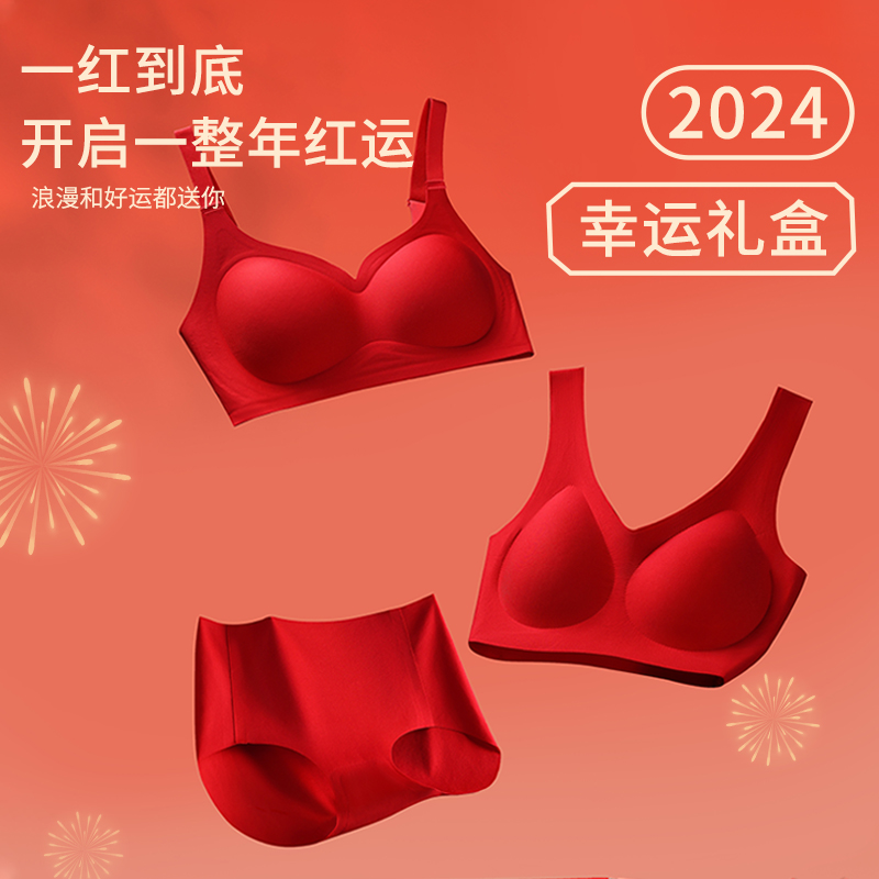开运礼盒红色本命年内衣套装女秋冬季结婚新娘内裤文胸罩2024龙年