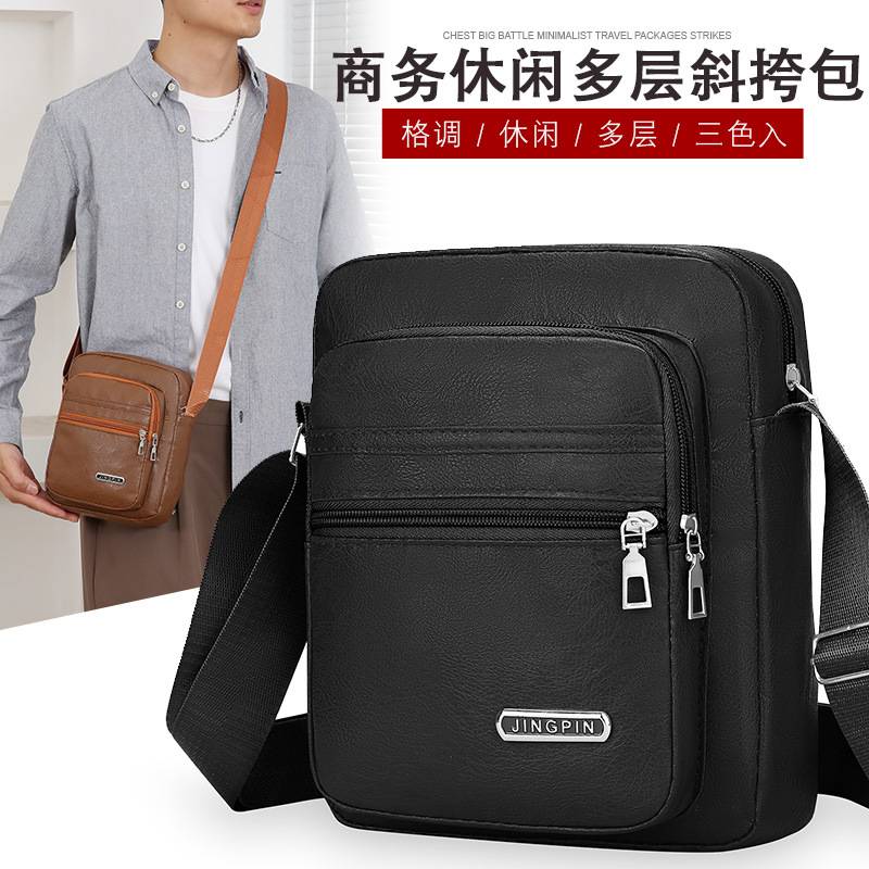 男包PU皮韩版新款单肩包商务休闲大容量斜挎包男士斜挎背包