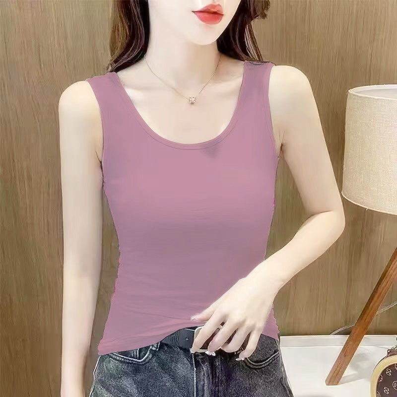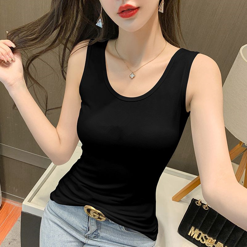 2024女士修身背心夏内搭外穿打底衫ins防走光上衣纯棉运动无袖T恤