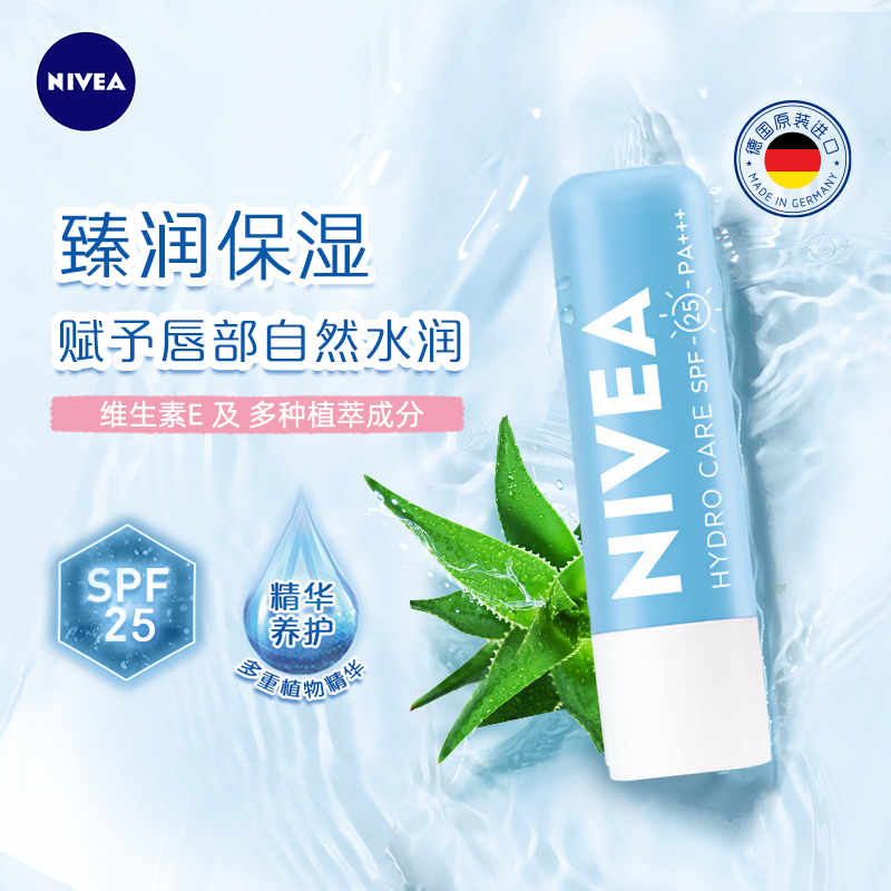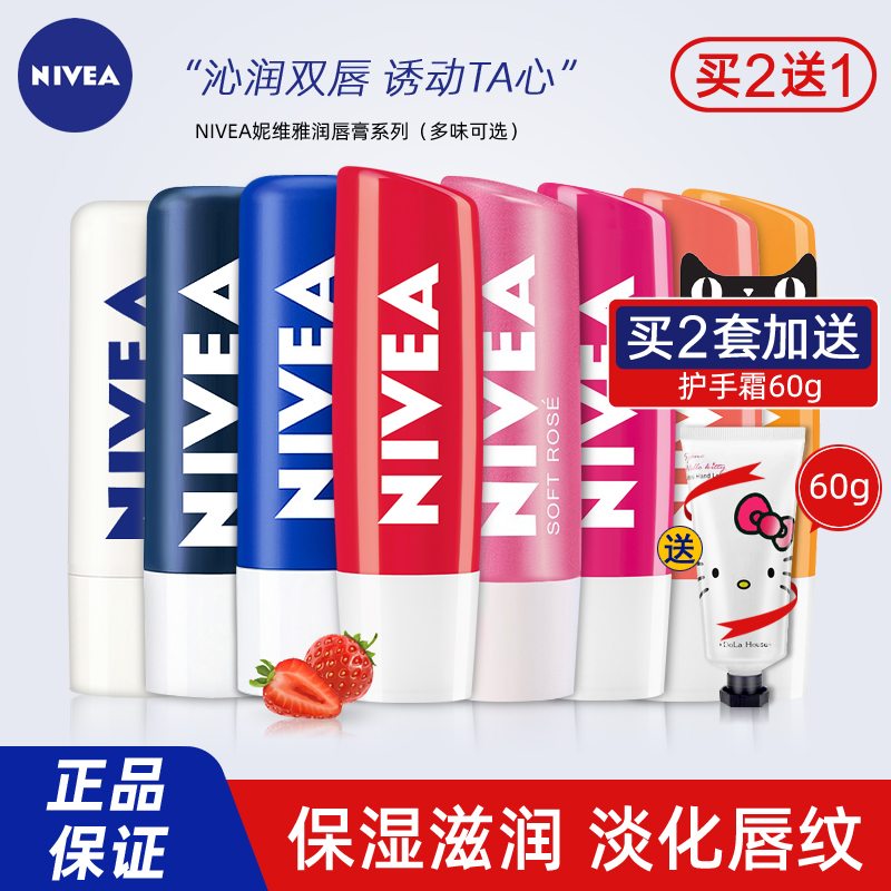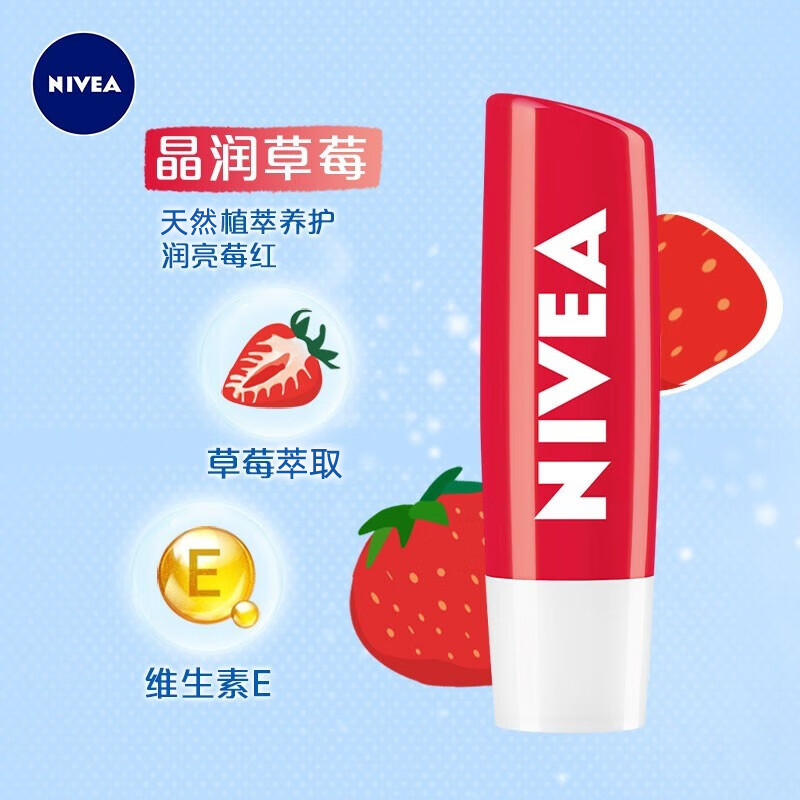 妮维雅润唇膏樱桃草莓天然修护水平男女通用变色淡彩夹心近口红
