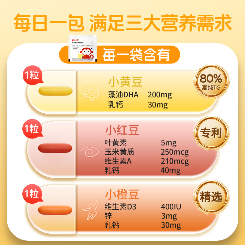 【蜂狂双11】升级版GNC健安喜儿童营养包dha藻油复合维生素3岁+