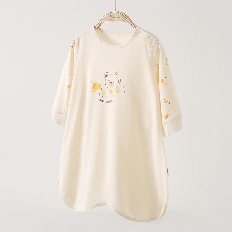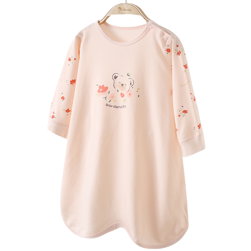 婴儿睡袍春秋四季款莫代尔棉女宝宝连体长袖睡衣婴童防踢被家居服