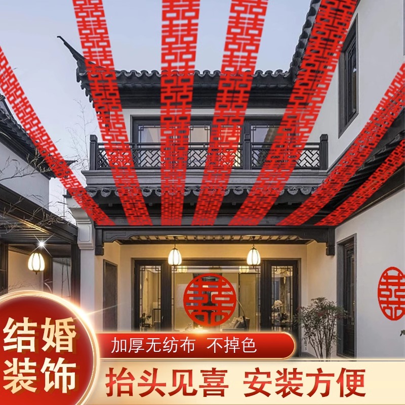 速发农村庭院婚礼外景布置婚庆室外长条喜字灯笼风车挂饰结婚院子