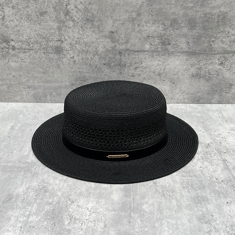 25新款夏季礼帽法式白色镂空平顶草帽男女防晒度假透气平沿遮阳帽