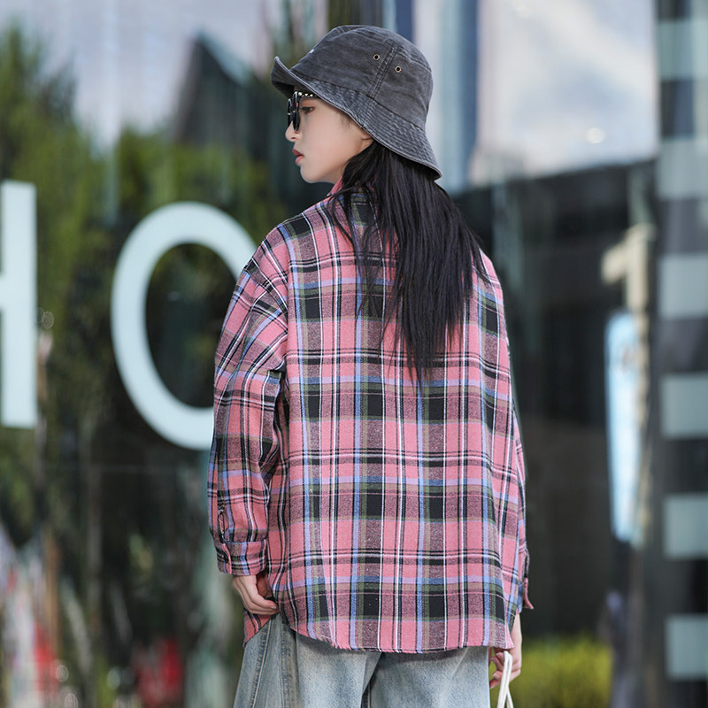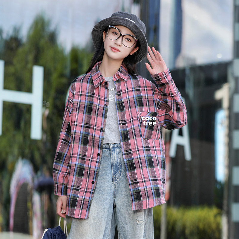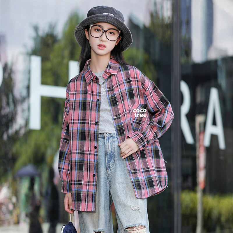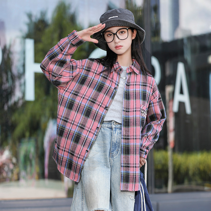 女童衬衫长袖春秋装韩版儿童格子上衣洋气中大童纯棉衬衣秋季外套