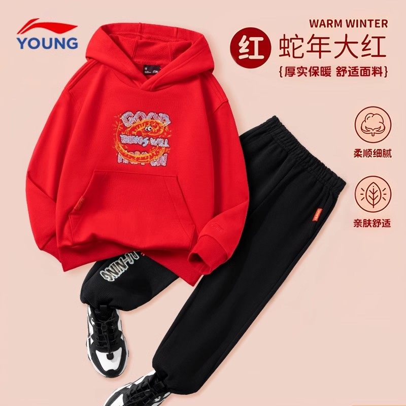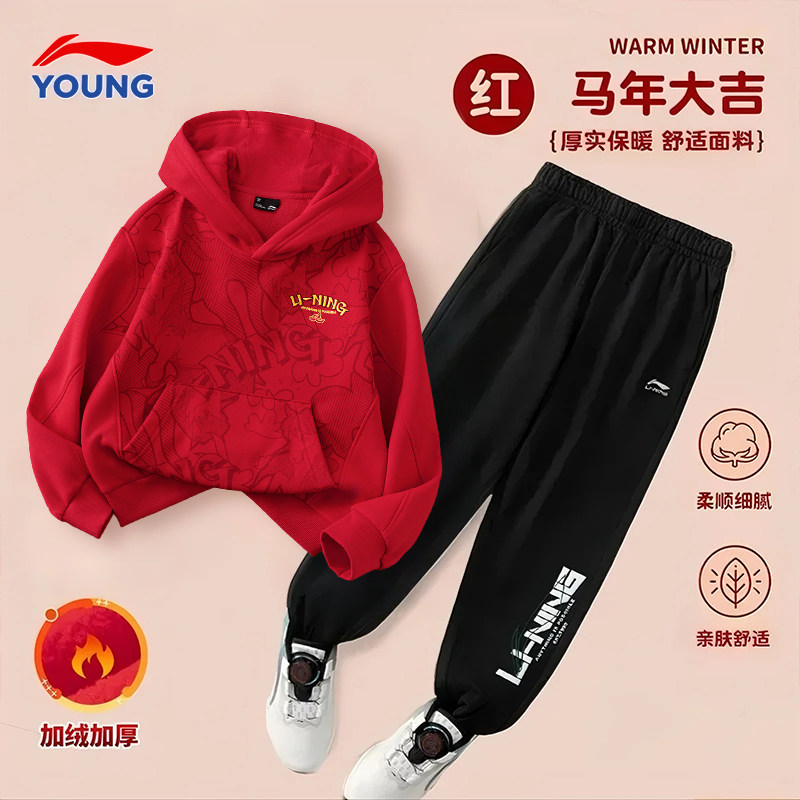 李宁儿童加绒卫衣卫裤套装男童本命年运动服2026马年女童新年套装