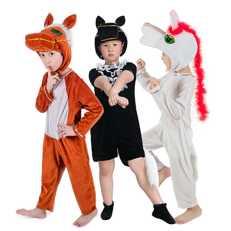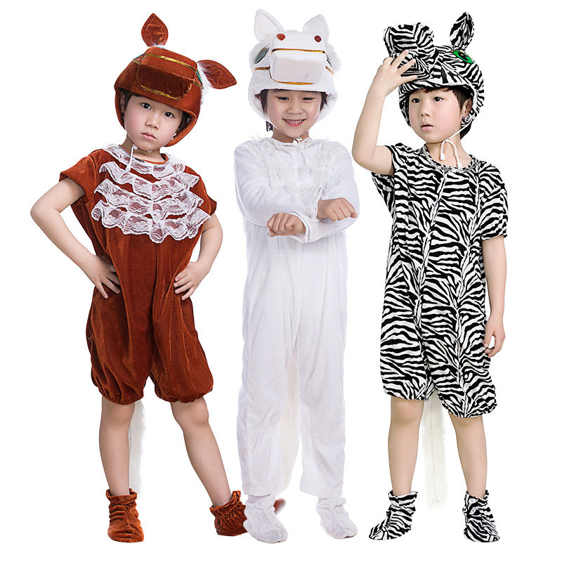 六一儿童动物演出服白马斑马飞蹄马卡通舞台服装表演衣服成人学生
