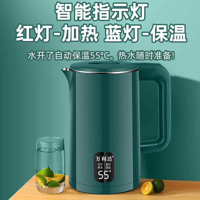 万利达家用煮水壶不锈钢养生开水壶2L升自动保温一体电热水壶