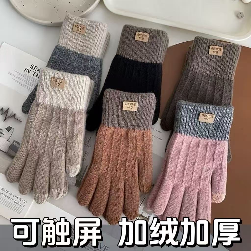 冬季羊绒保暖手套女士2025新款防寒保暖加绒加厚骑车触屏防风手套