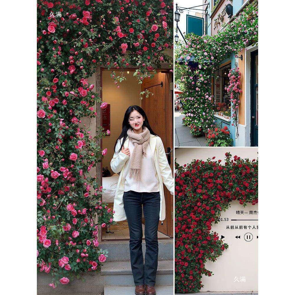 玫瑰t$*&lznh花网打卡花花墙瀑布墙假管道装饰壁花藤条遮红挡门头