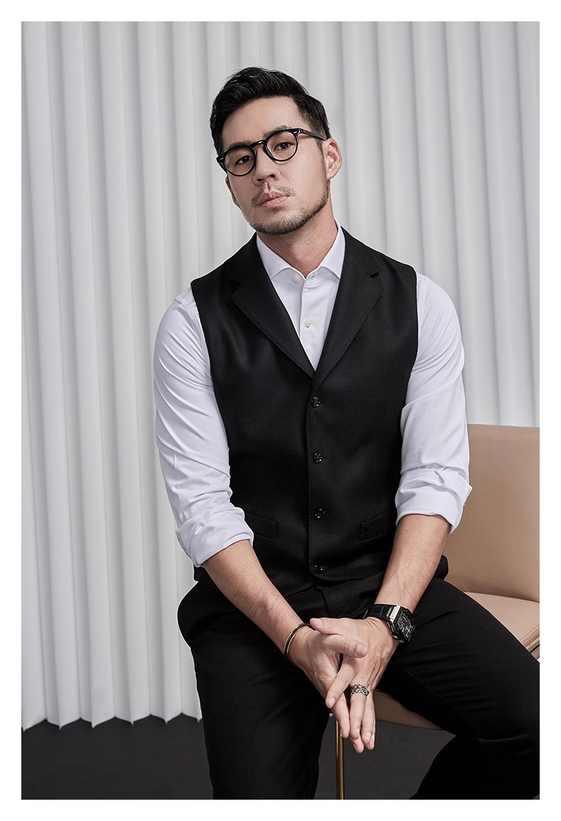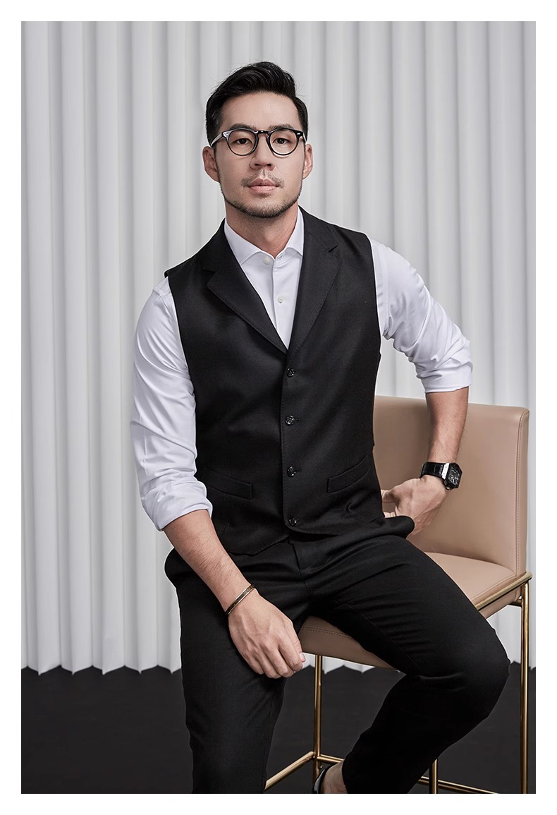 秋冬羊毛抗皱西服领马甲男士修身单排扣黑色百搭保暖时尚潮男背心