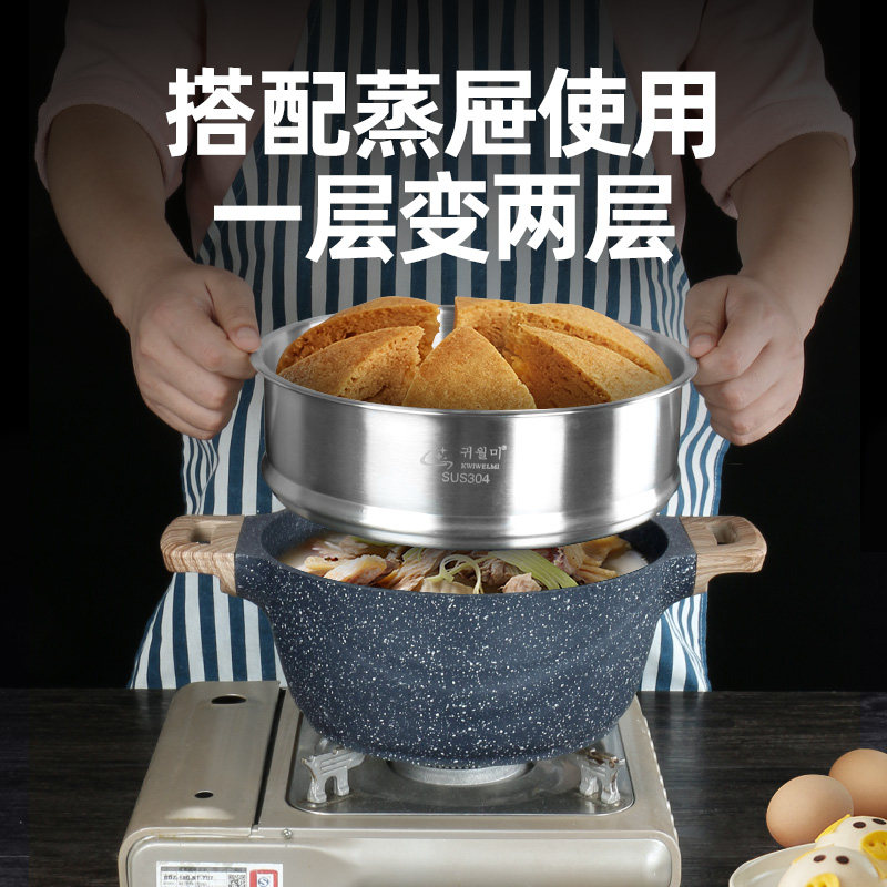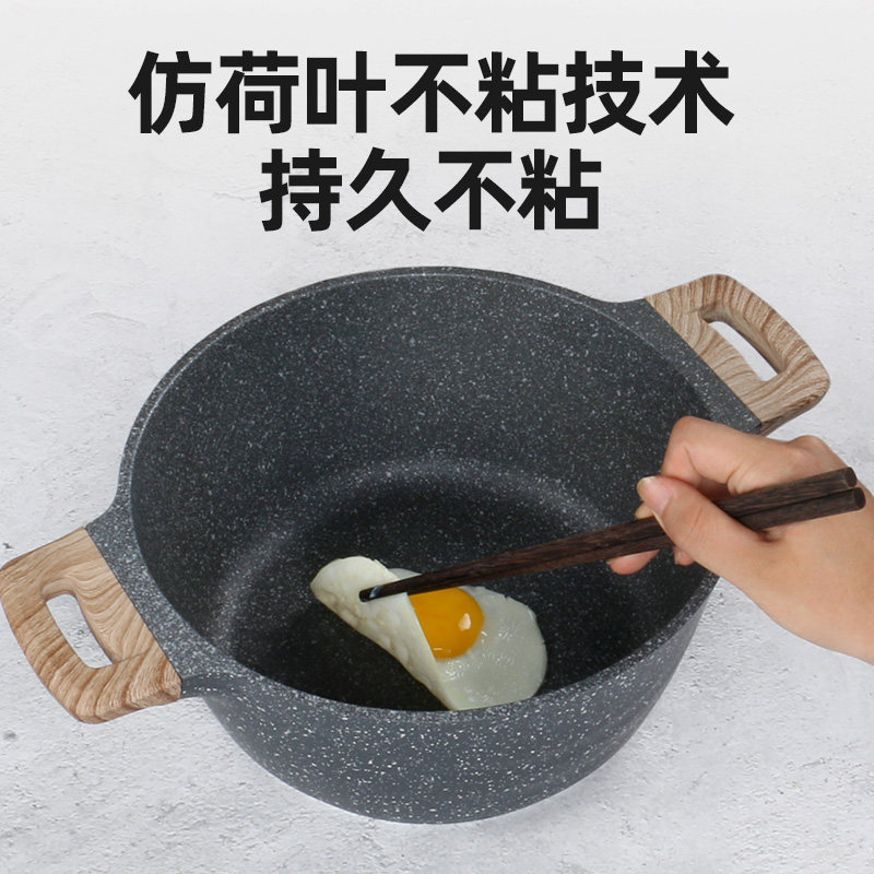 麦饭石汤锅炖锅家用燃气电磁炉通用小不粘锅煲汤锅蒸奶锅双耳熬汤