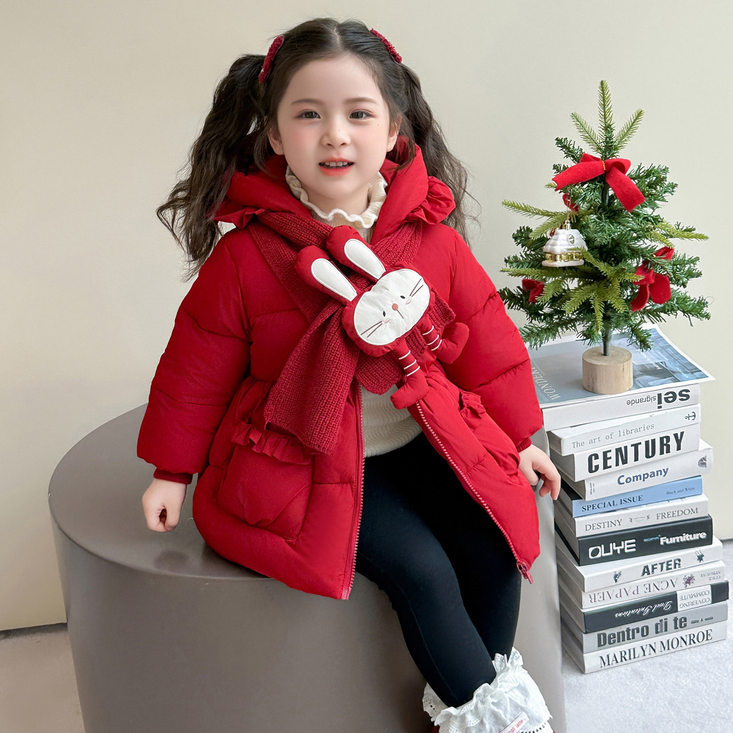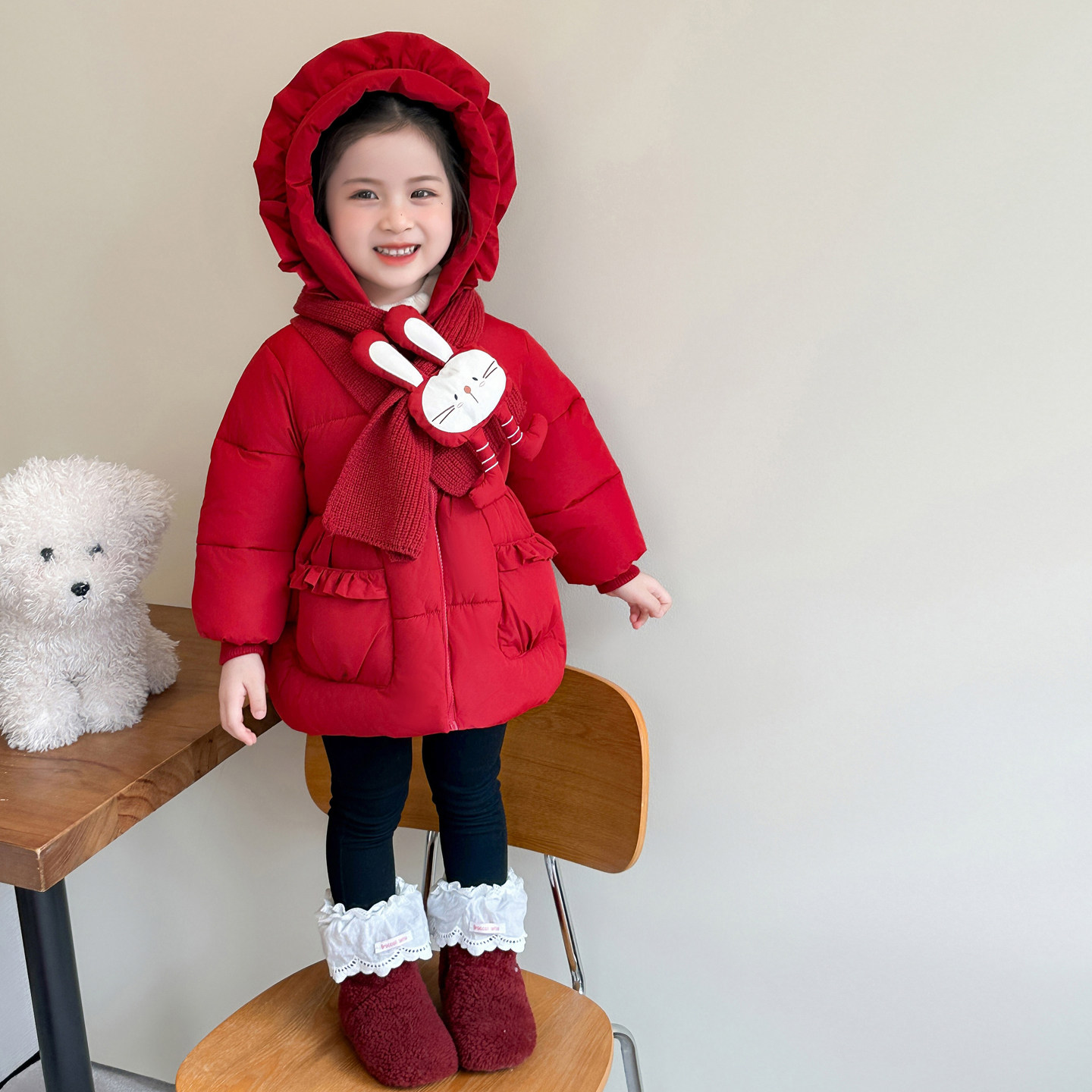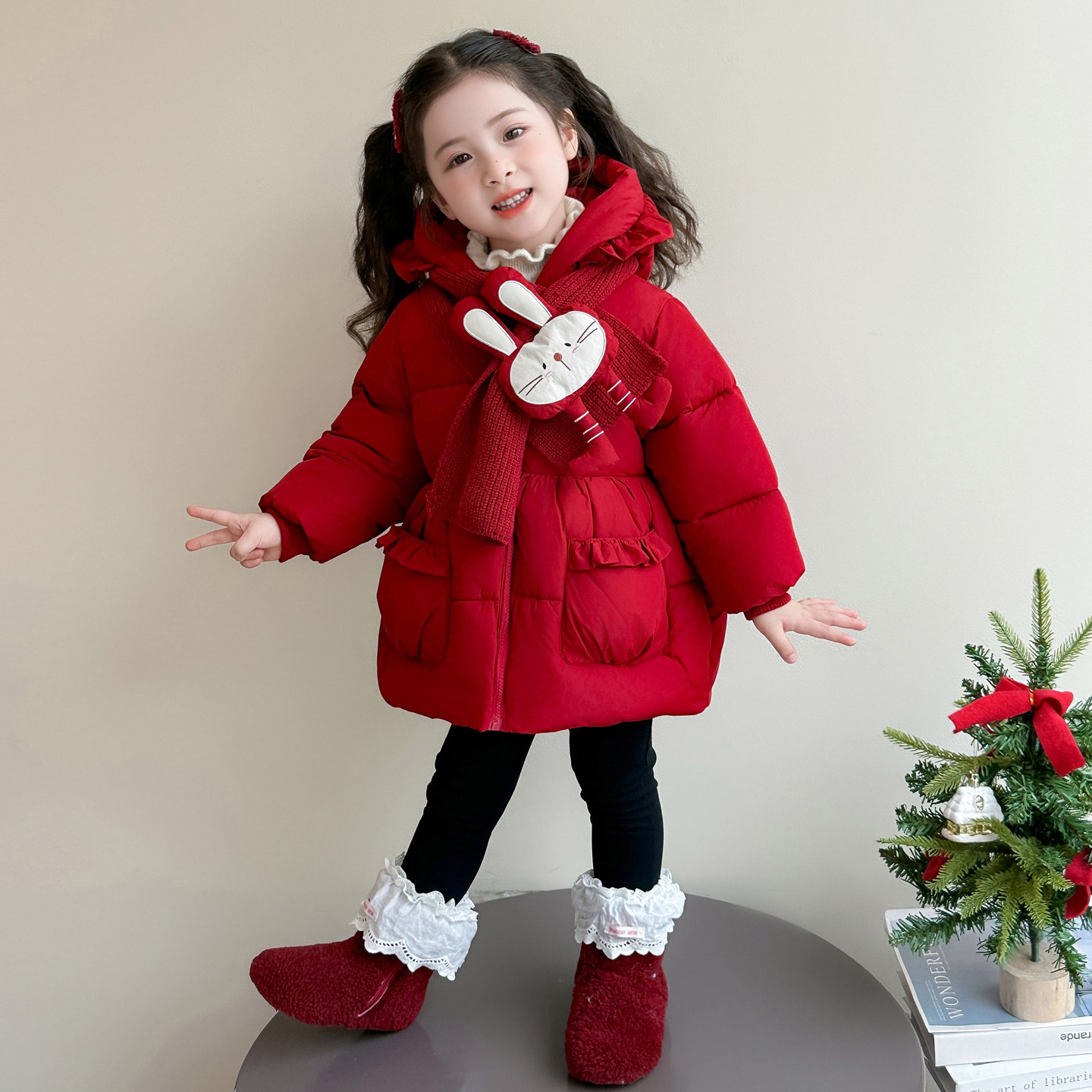女童羽绒服2025新款冬季兔子拜年服儿童秋冬装红色女宝宝加厚外套