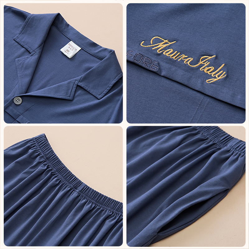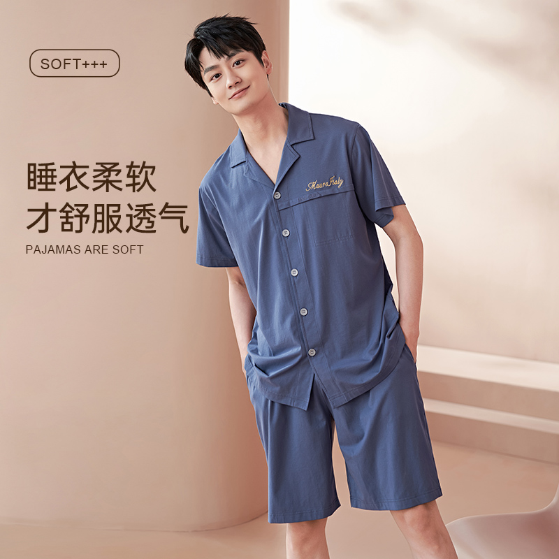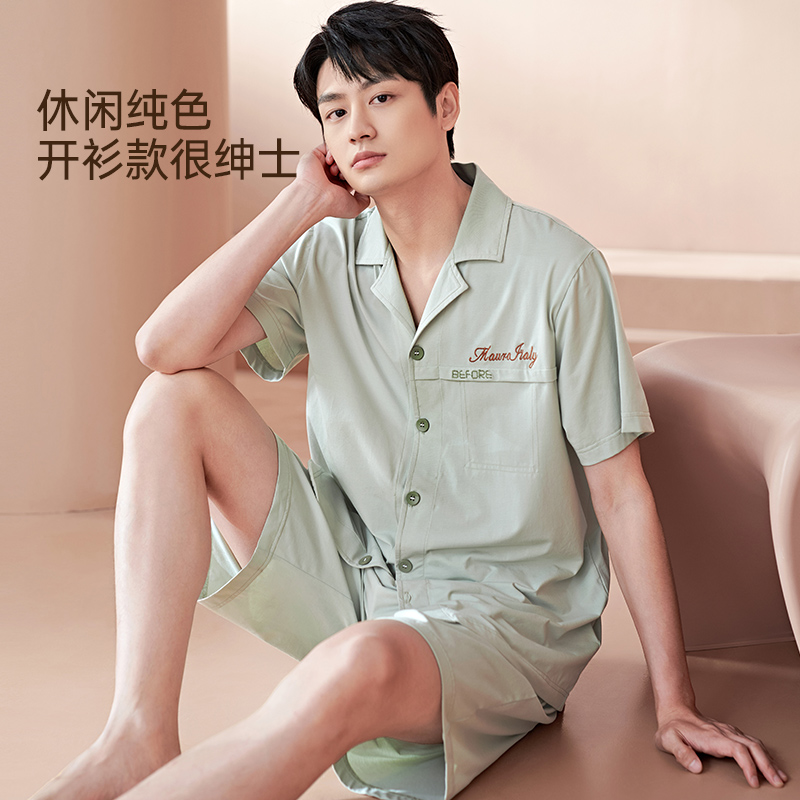 玛伦萨【5A抗菌】睡衣男纯棉夏季薄款纯色短袖套装男士家居服夏天