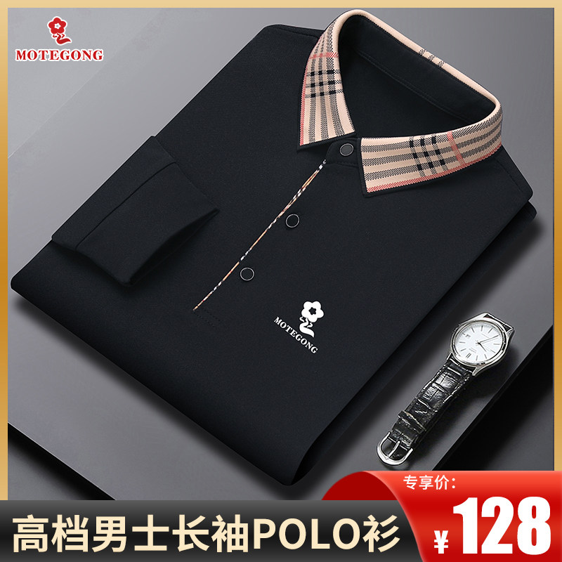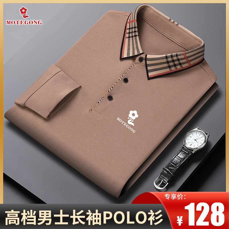梦娇高档男士桑蚕丝长袖T恤男秋季中年休闲翻领大码爸爸装POLO衫