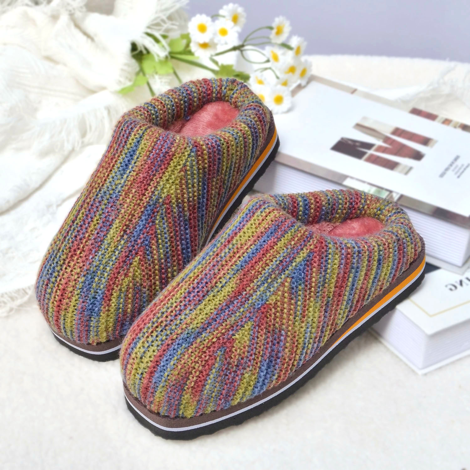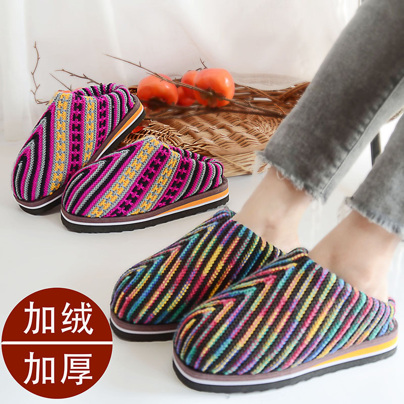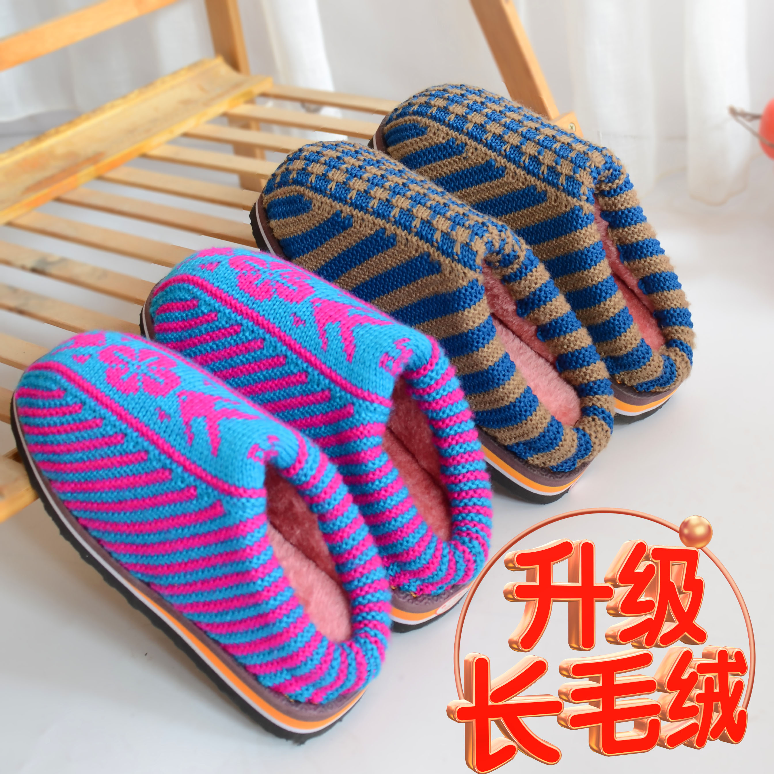 秋冬季孺子牛编织成品毛线拖鞋
