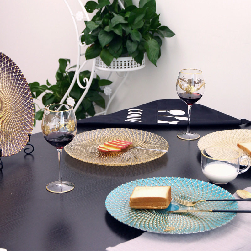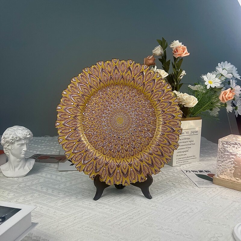 欧式风格大号水晶玻璃水果盘零食盘绿色菠萝盘客厅糖果盘圆形平盘