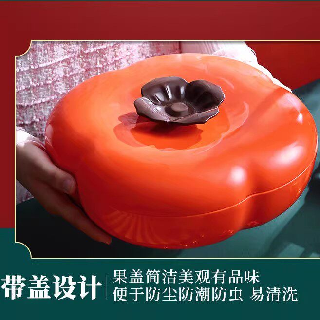 柿柿如意分格带盖果盒客厅茶几坚果糖果盒子中式家用客厅果盘