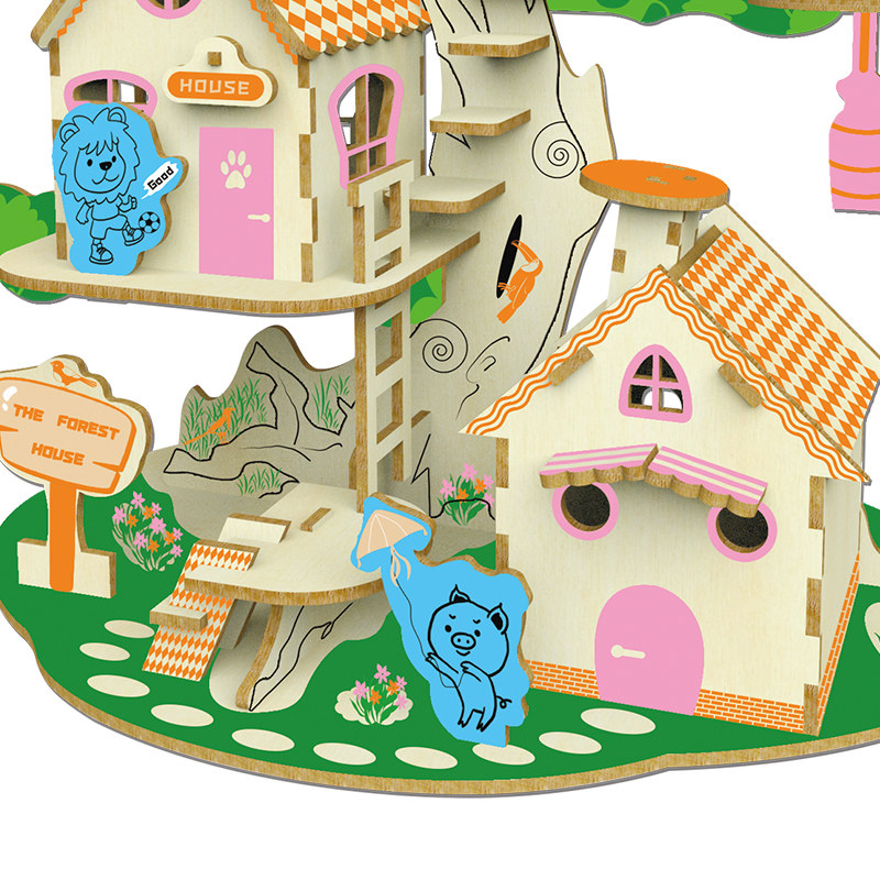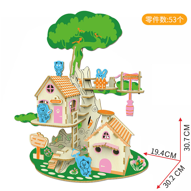 【迪尔乐斯】森林树屋木质模型3d立体拼图儿童益智手工玩具