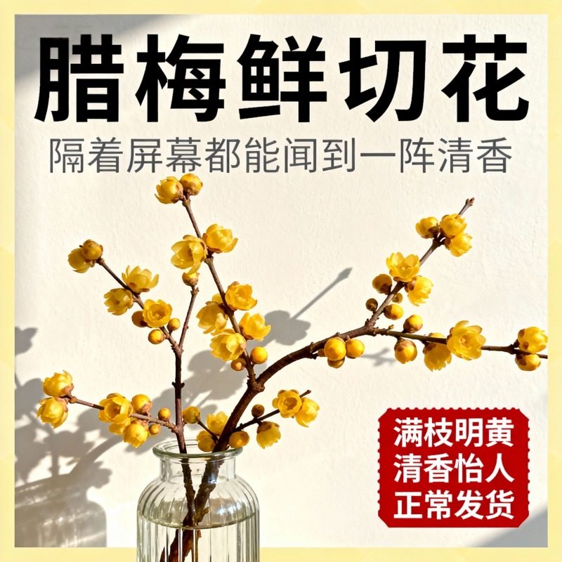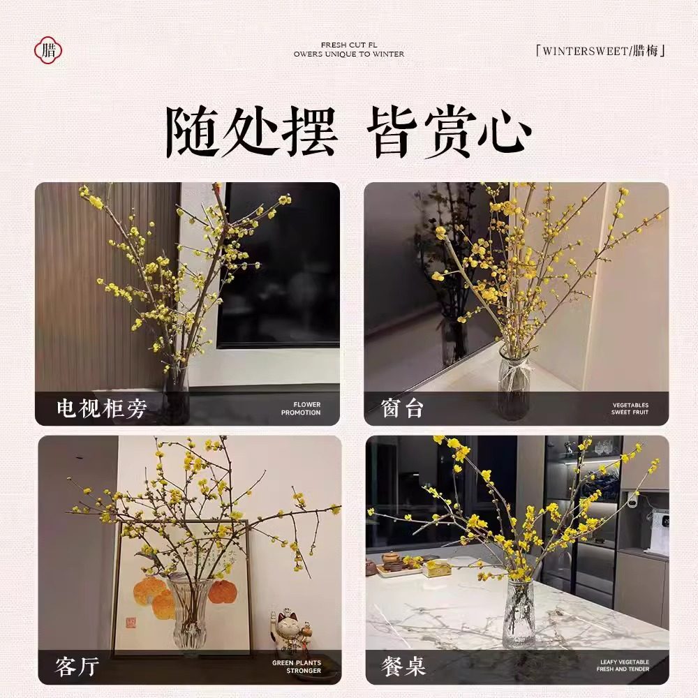 腊梅鲜切花干枝水培植物鲜切插花束年宵花室内水养花卉客厅摆设