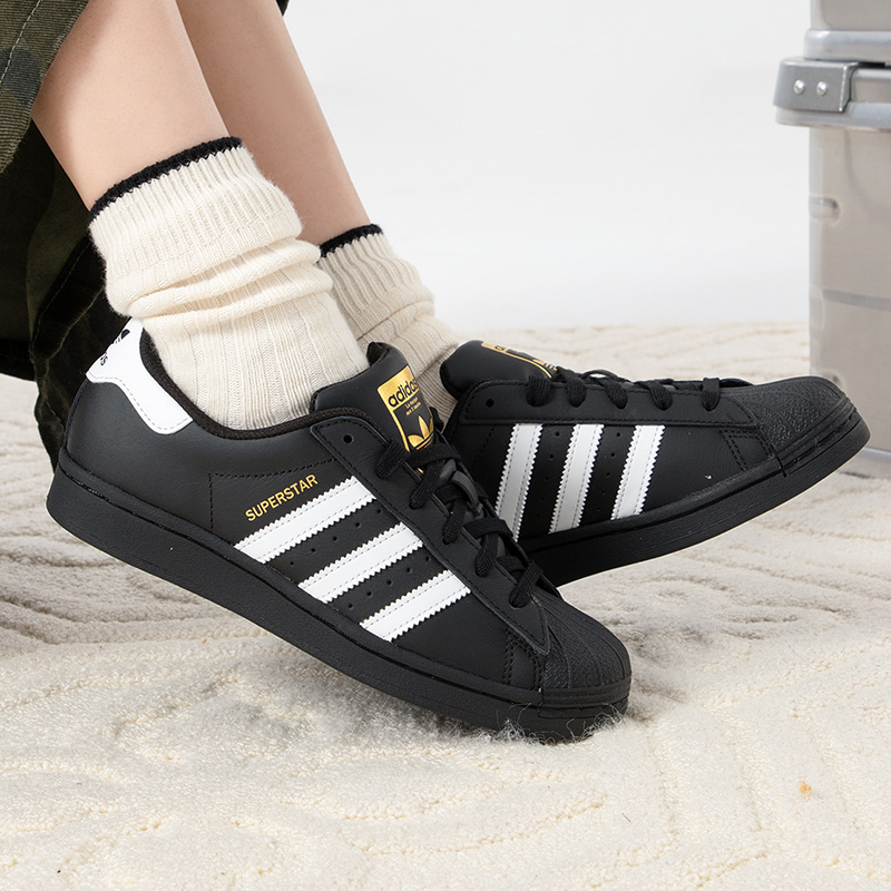 adidas阿迪达斯三叶草男女鞋板鞋秋秋季新款金标黑色贝壳头休闲鞋