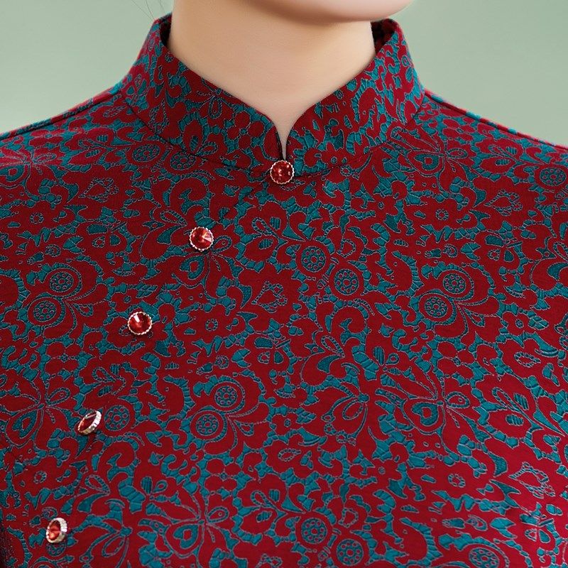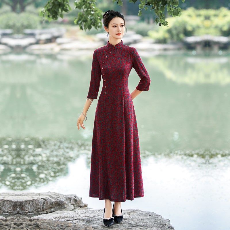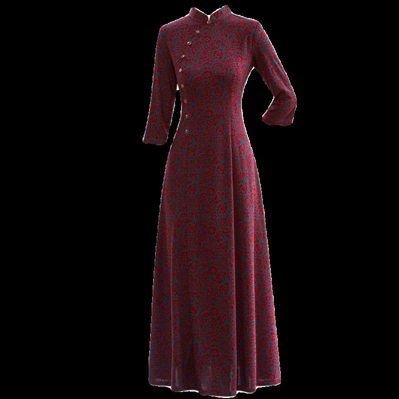 改良旗袍连衣裙老年女妈妈长袖春秋女装新中式日常礼服复古中国风