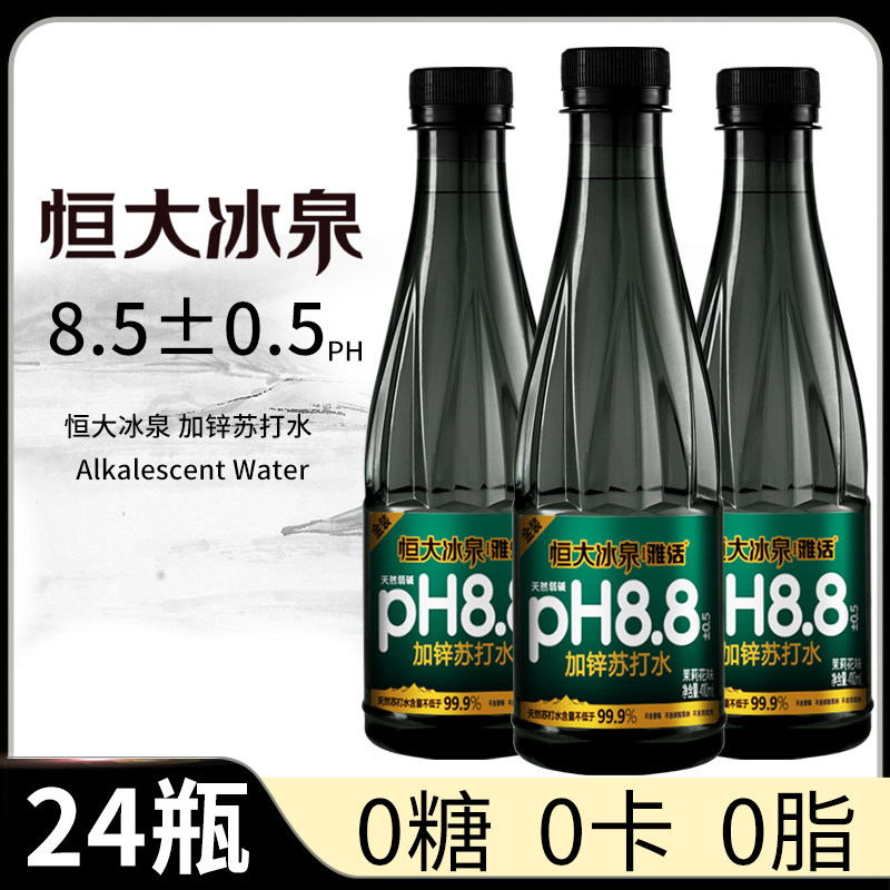 天然正品碱性无汽410ml24/12恒大冰泉苏打水整箱弱碱无糖饮用水