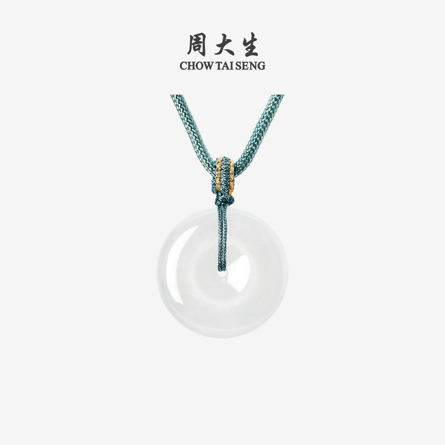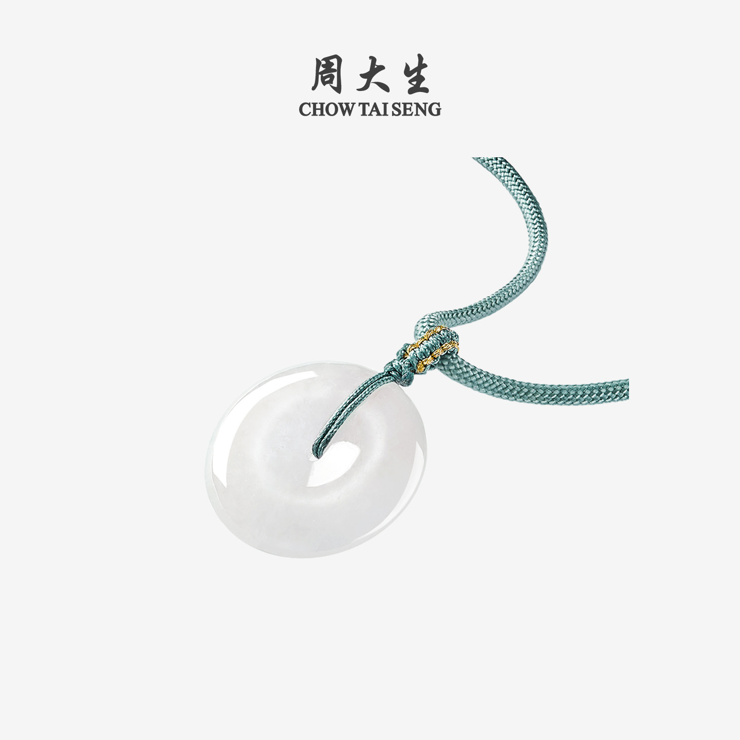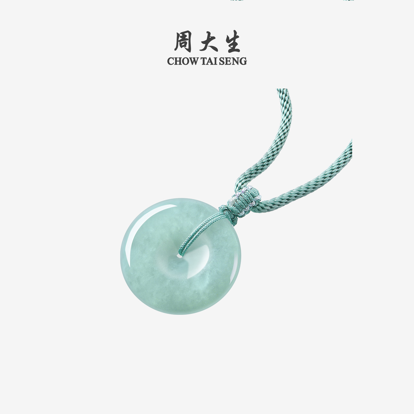 周大生天然翡翠平安扣吊坠女糯种玉石项链编绳挂坠生日礼物送女友
