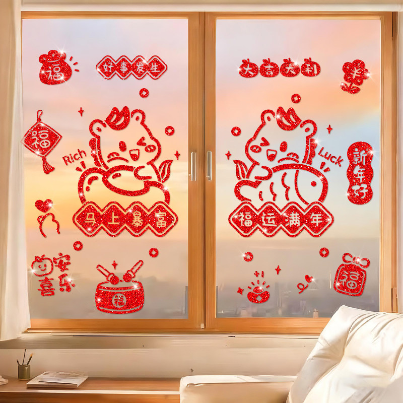 2026新年静电玻璃门贴装饰春节窗户窗花喜庆贴纸马年贴画氛围布置
