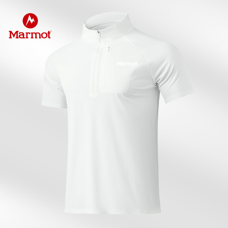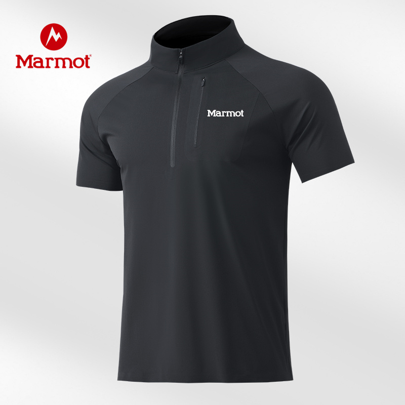 MARMOT土拨鼠短袖T恤男夏季冰丝半拉链上衣跑步训练服防晒男装