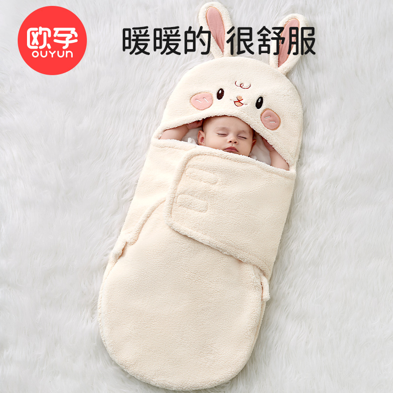 欧孕新生婴儿包被秋冬加厚冬季款宝宝外出纯棉初生羊羔绒产房抱被