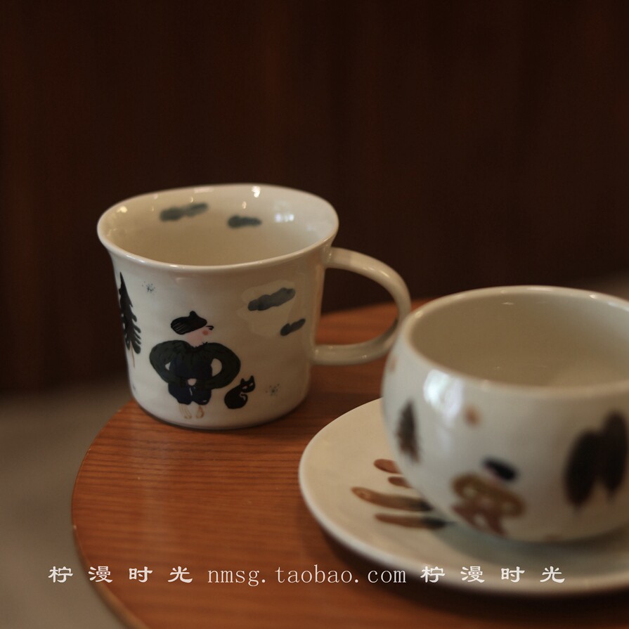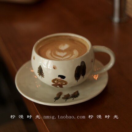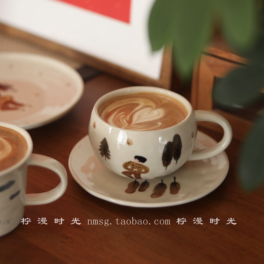 日系复古森系手绘釉下彩陶瓷咖啡杯碟拿铁拉花杯马克杯下午茶