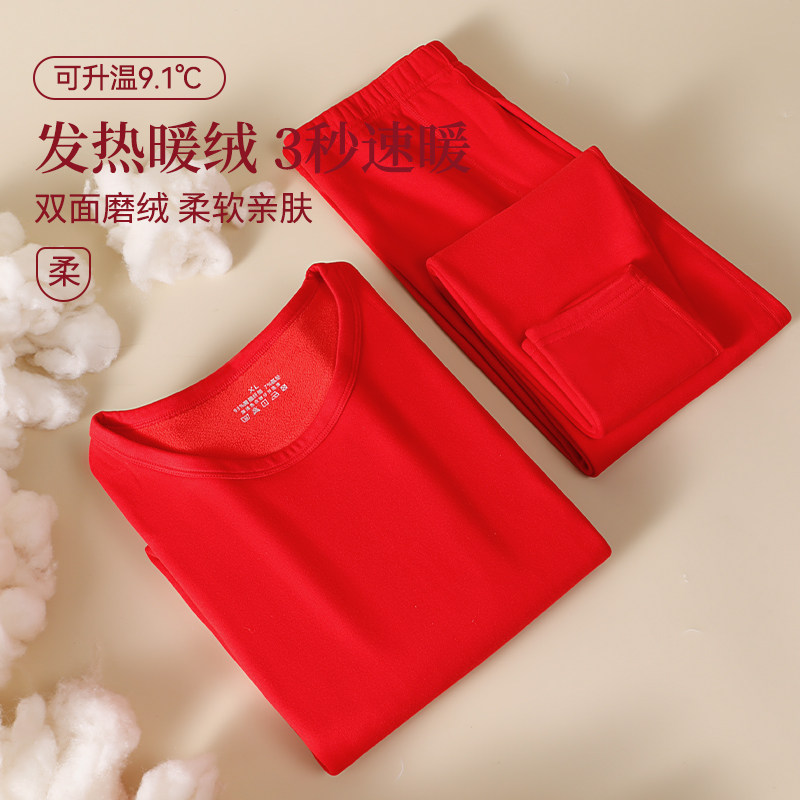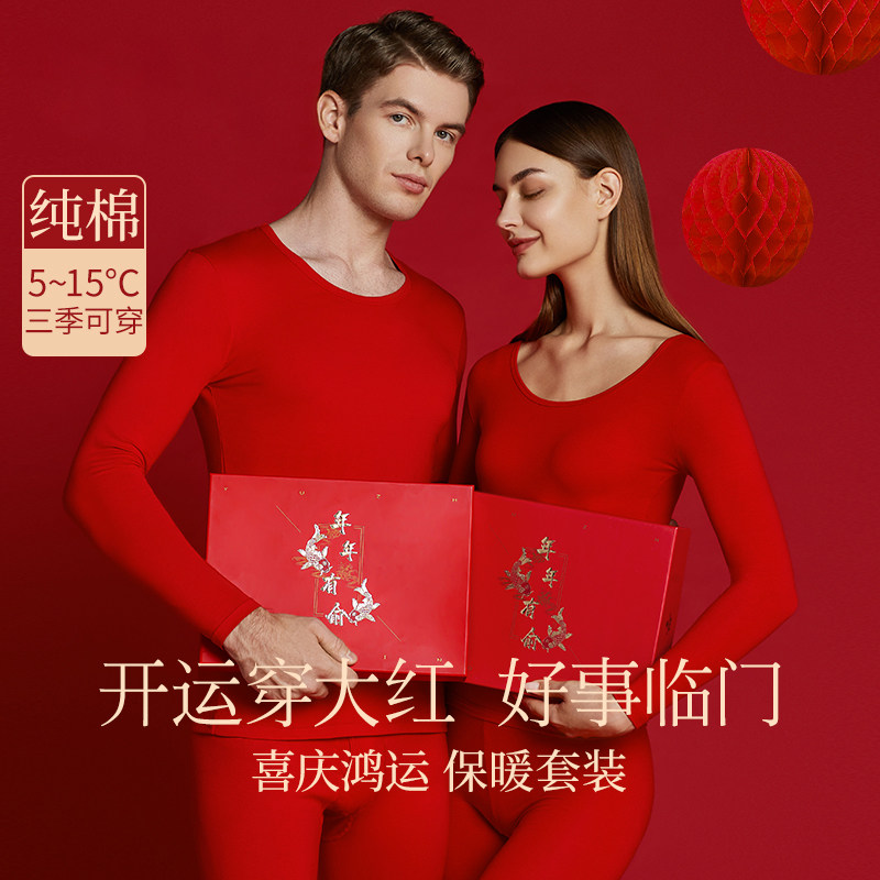 本命年保暖内衣套装男女士纯棉秋衣秋裤加绒加厚2025蛇年红色结婚